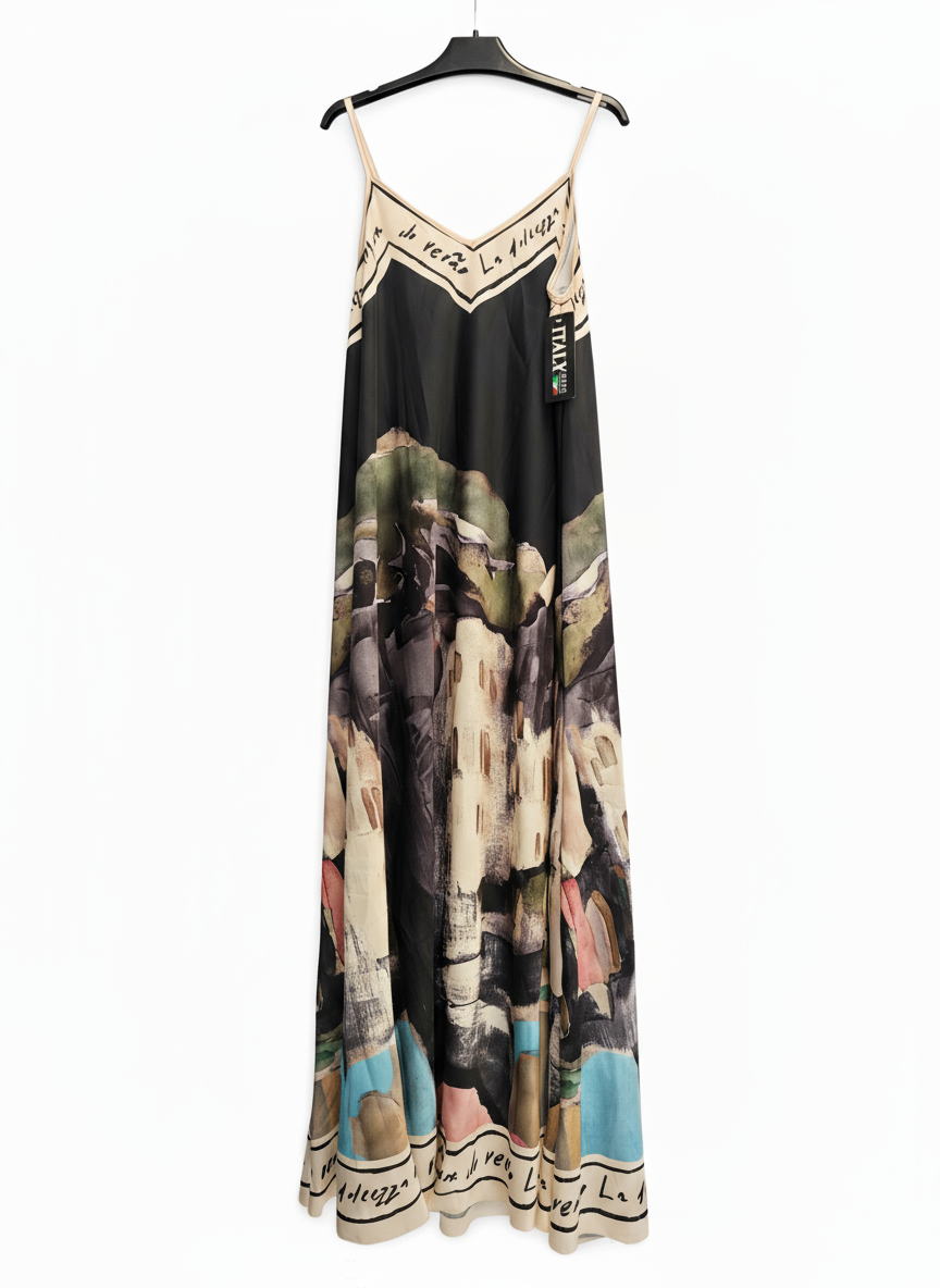 Italian hand-made Maxi dress - premium quality Italian water coloured print