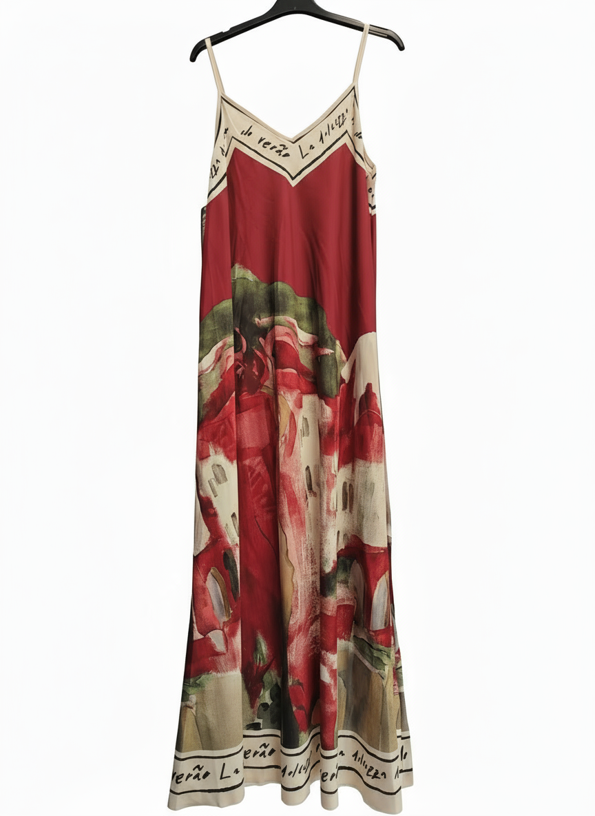 Italian hand-made Maxi dress - premium quality Italian water coloured print
