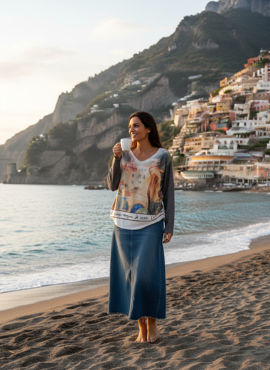 A delicate Italian watercolour print sweater featuring soft, painterly hues that blend seamlessly across a lightweight knit. Crafted in Italy, this elegant piece combines artistic flair with effortless comfort—perfect for adding a touch of refined color and sophistication to any look.